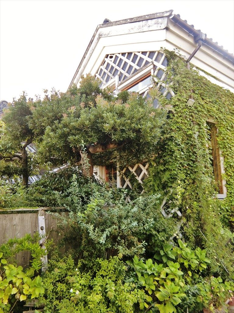 とても立派なナマコ壁の蔵で、緑に覆われている。