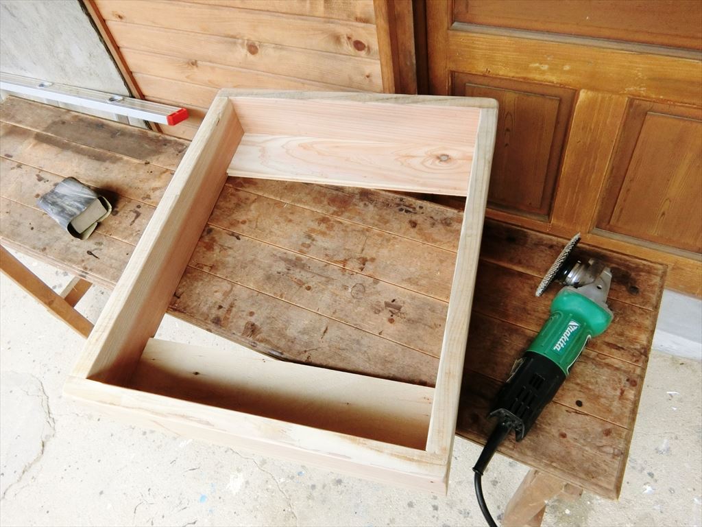 材料はテレビラックを作った残材の杉板。