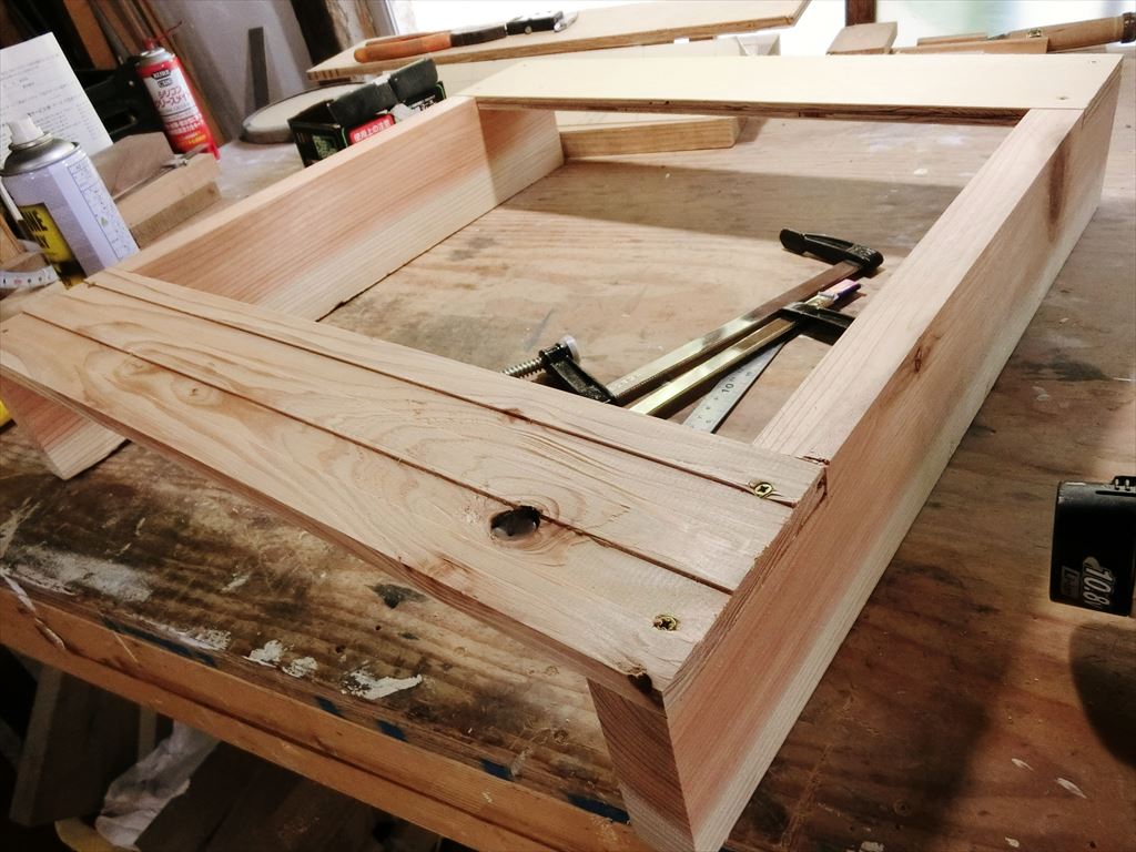 ノコで切り欠き。ここに補強の材がはまります。以上、加工終了(^^)/
