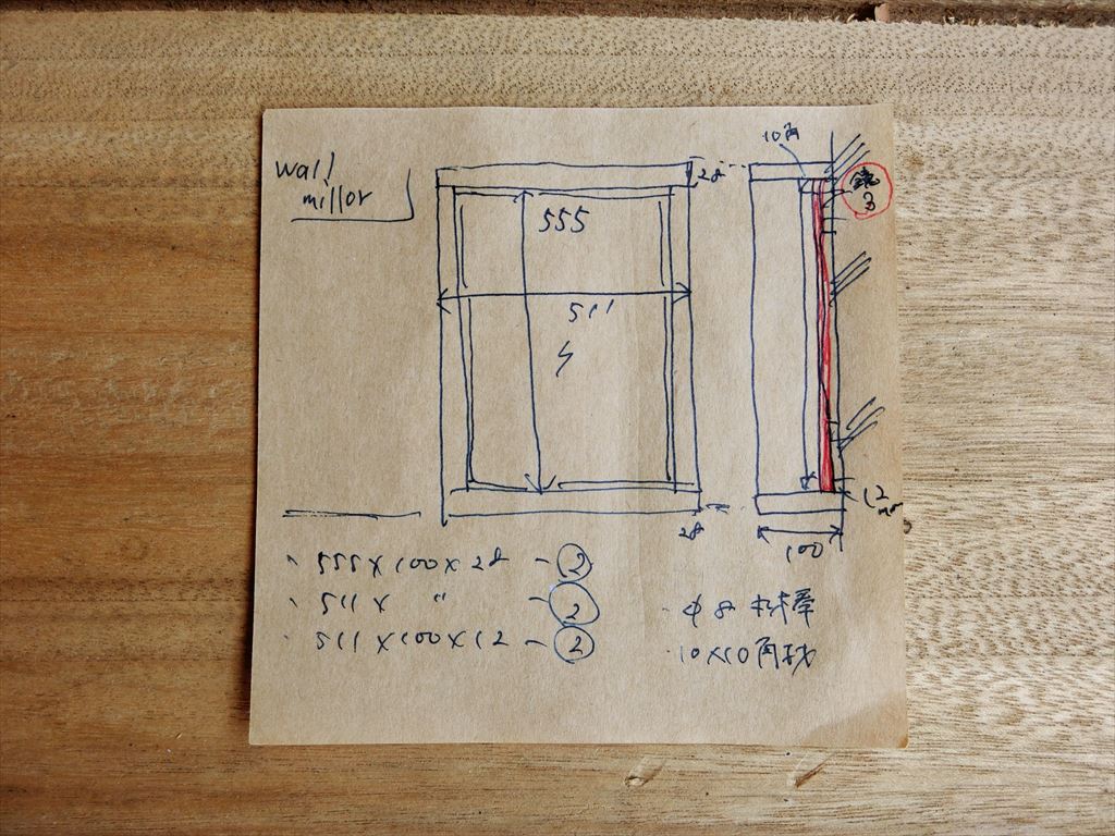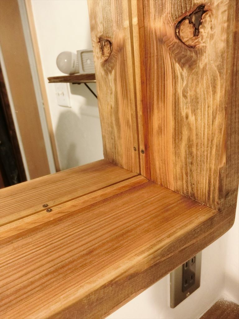 鏡は「お値段以上ニトリ」サマの既製品から外したのを使用。ちなみに1800円。