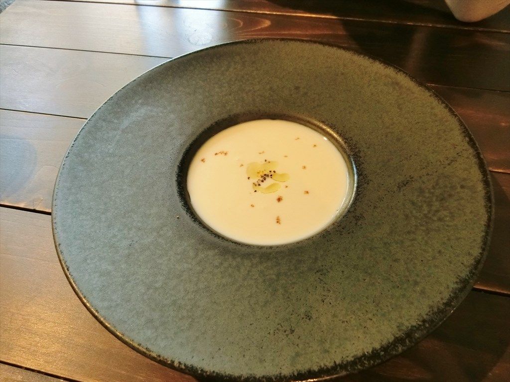 四角い器が特徴的ですがお味もモチロンおいしくて、ぶっ刺さってるお煎餅みたいなのはバナナを薄く延ばして低温でじっくりと焼いてあるものでオモシロイ食感でした。