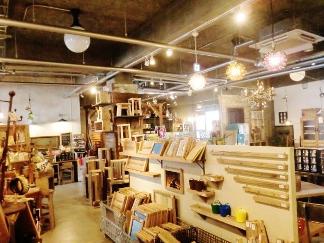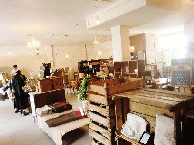 足場板を使った家具&雑貨と、体に優しいランチが食べられるshop&cafe。