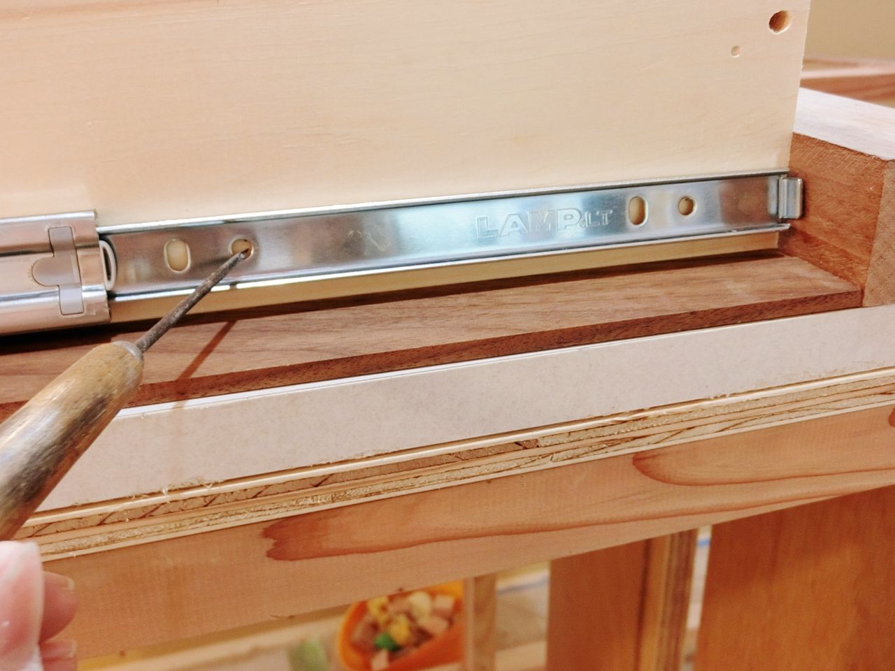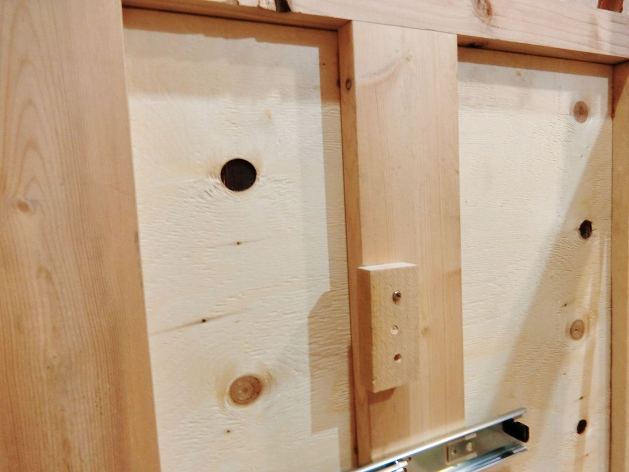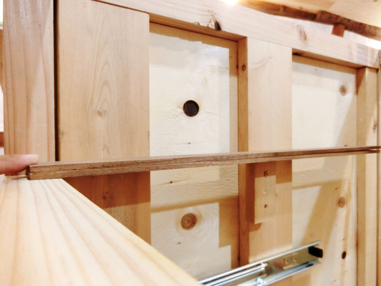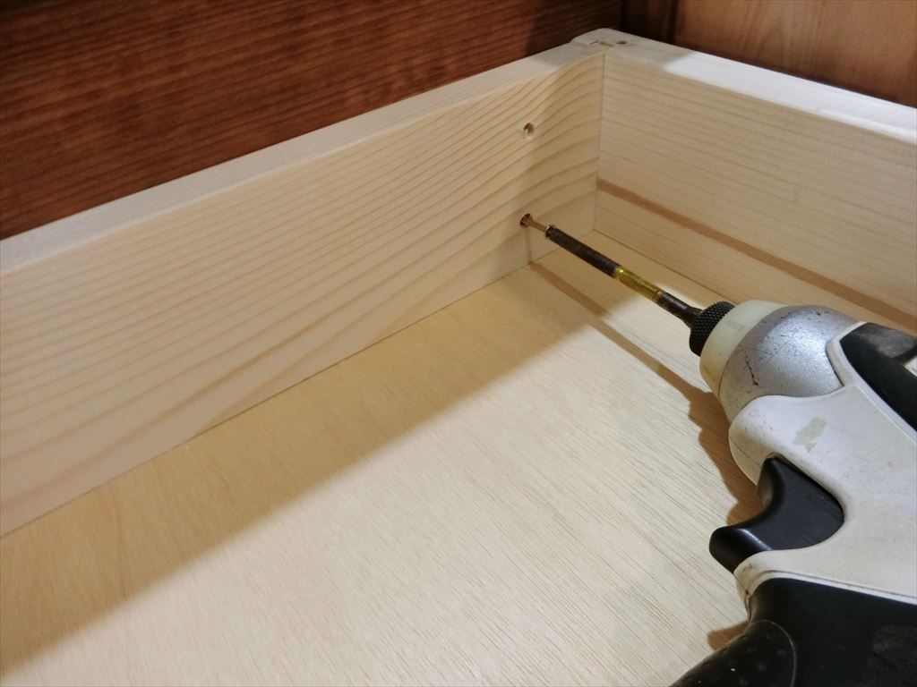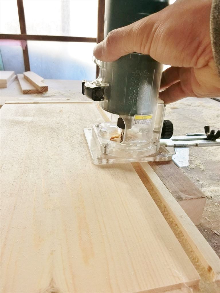 こんなアンバイですね。溝にベニヤを切り出して作った実をはめて接着。