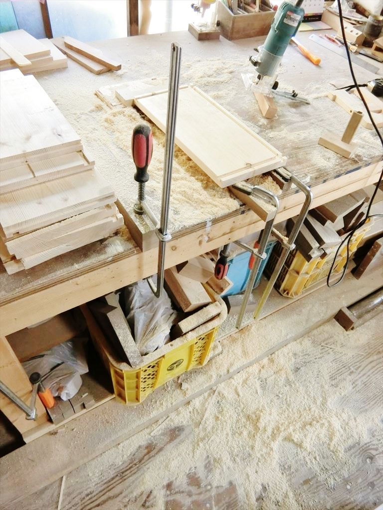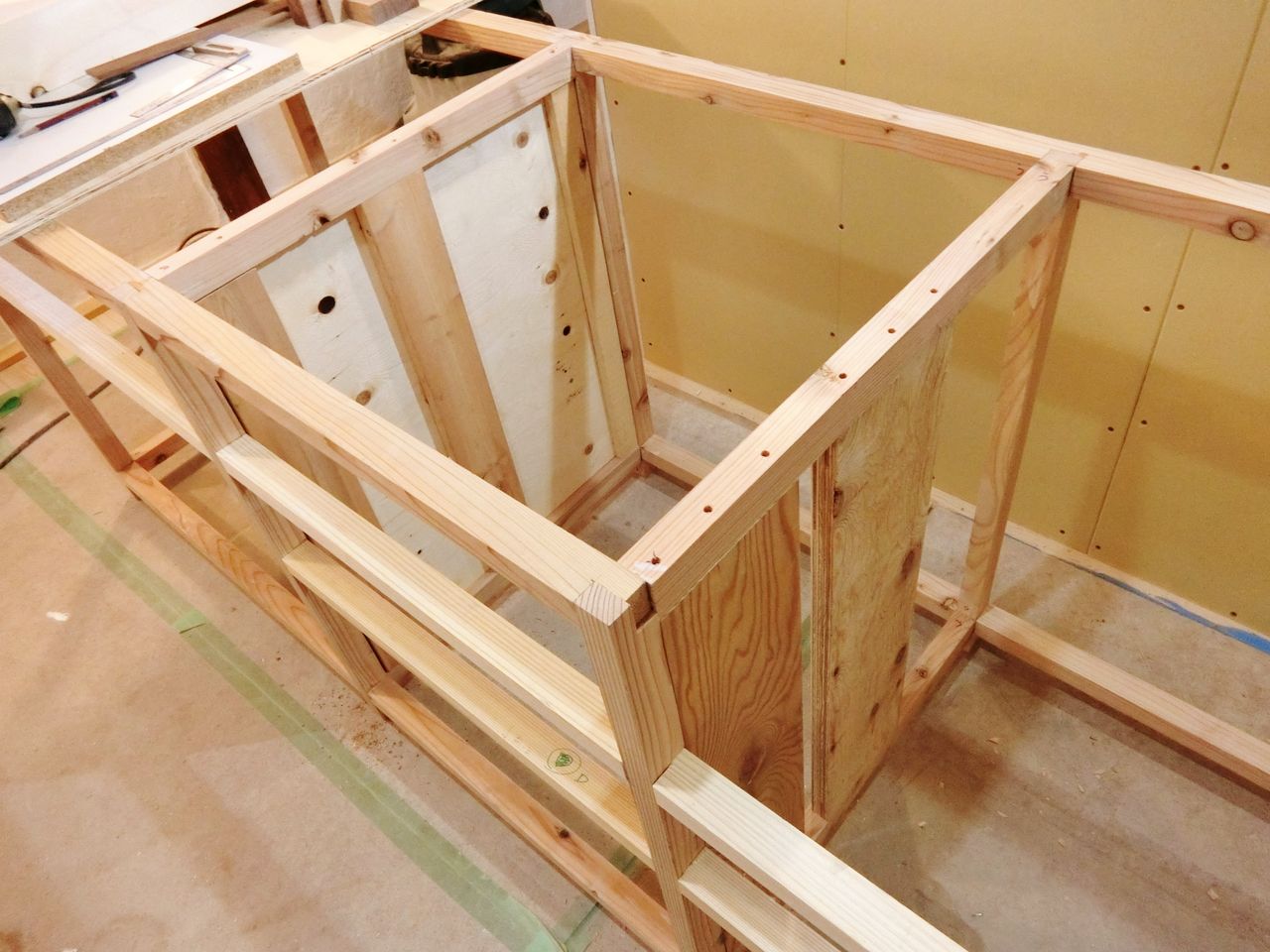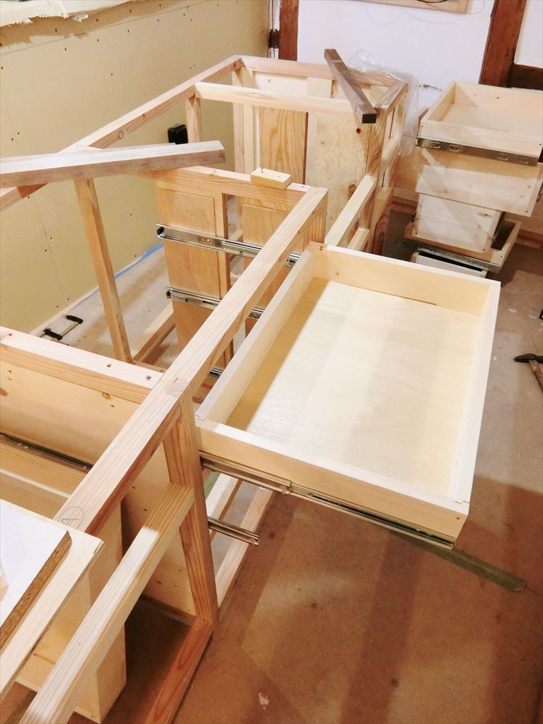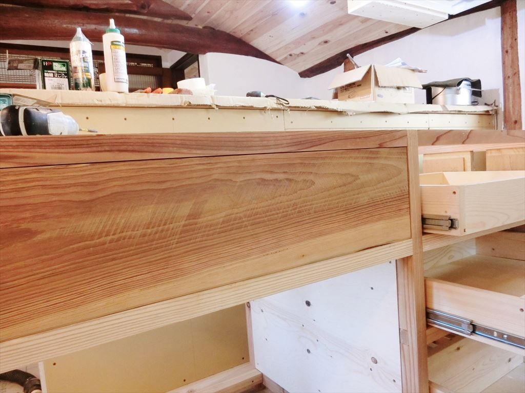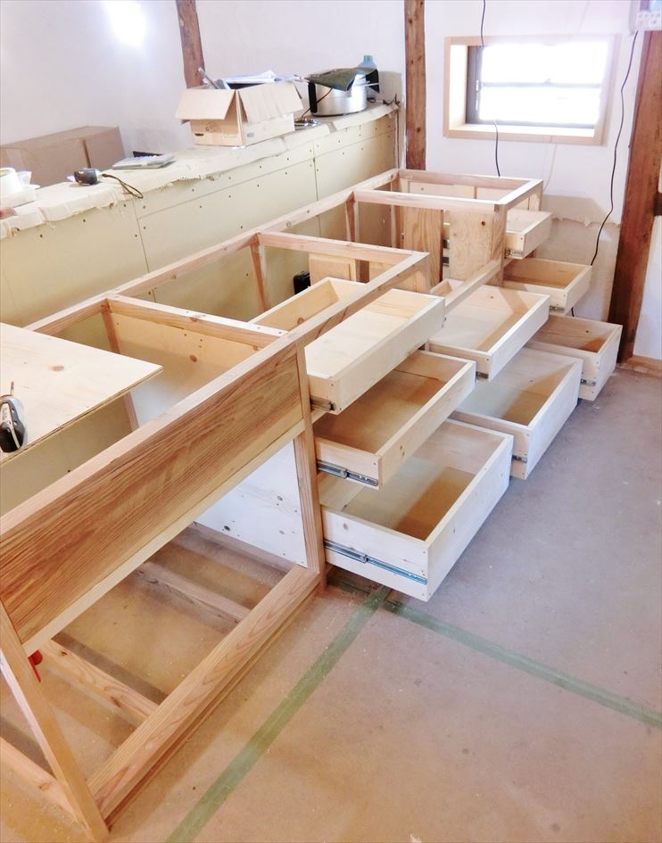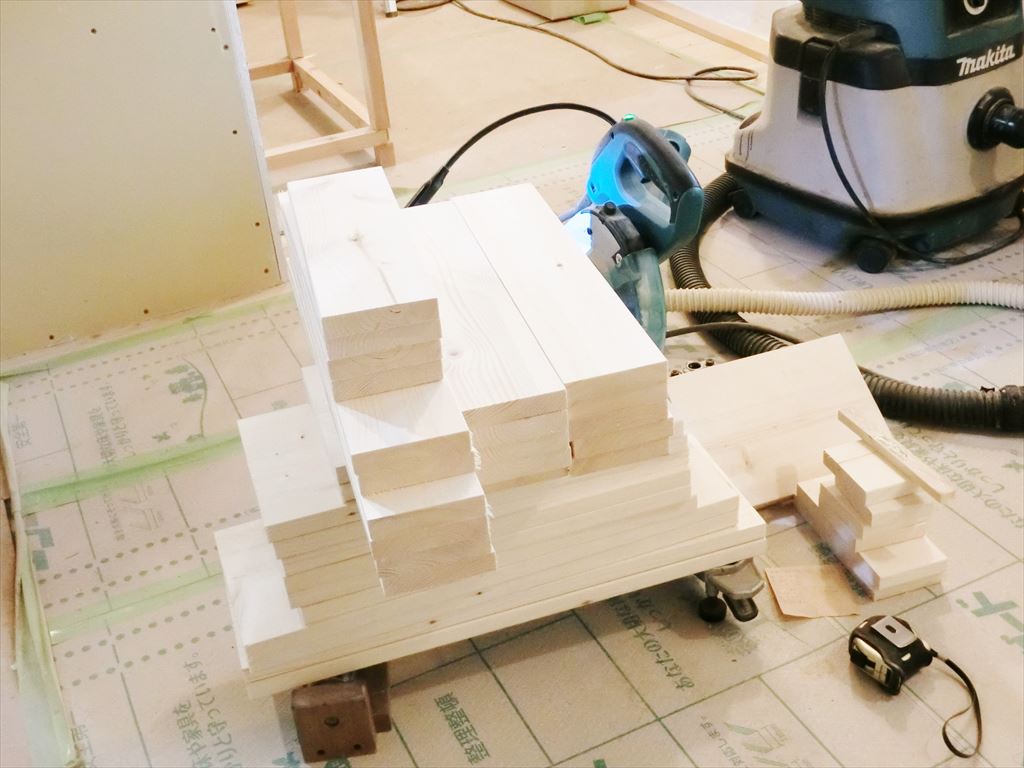 キッチン本体はほぼできたので、家電を収納する棚を作ります。