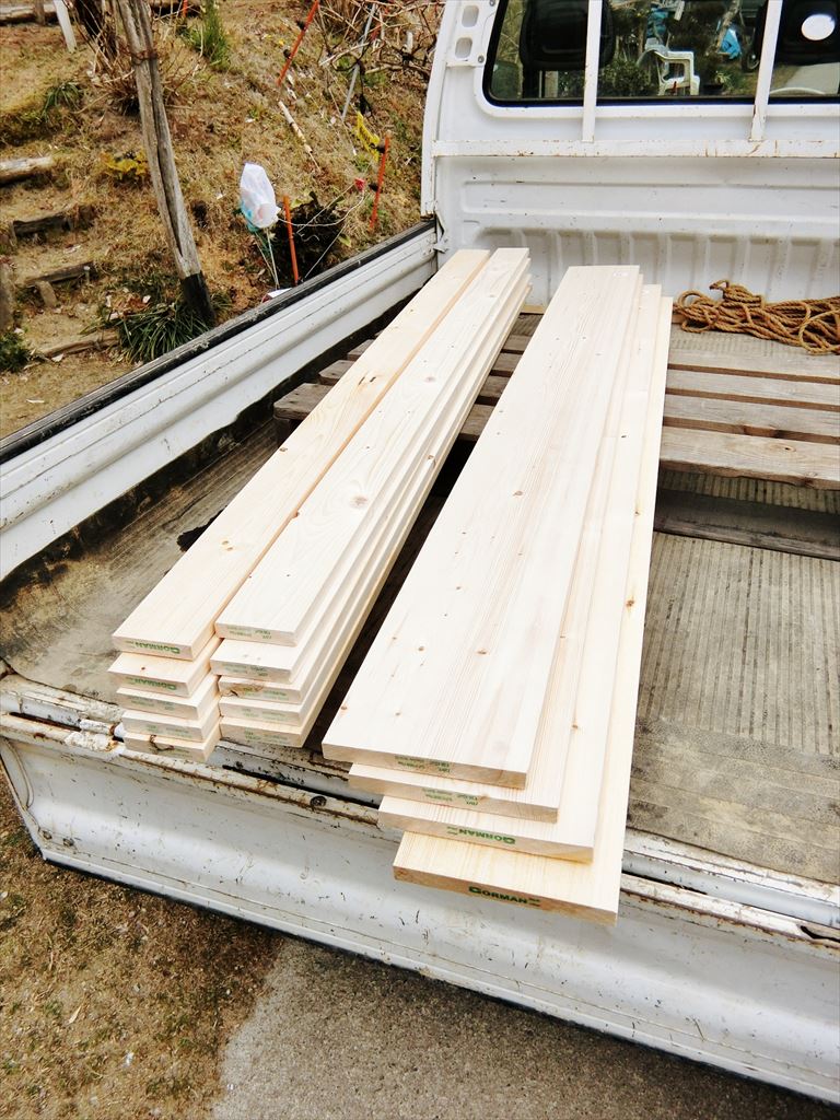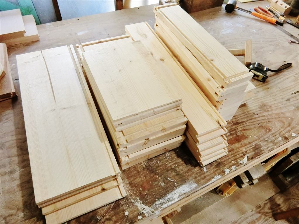 材は、何十年も前にうちのじい様が山から切り出し製材してあった松デス。